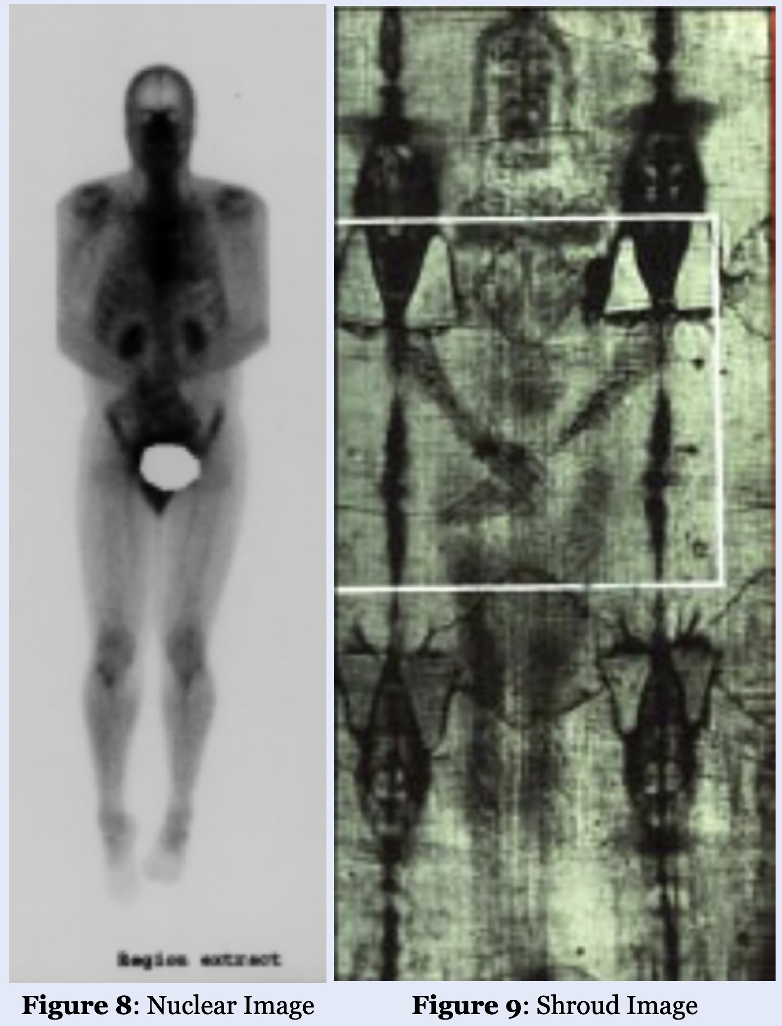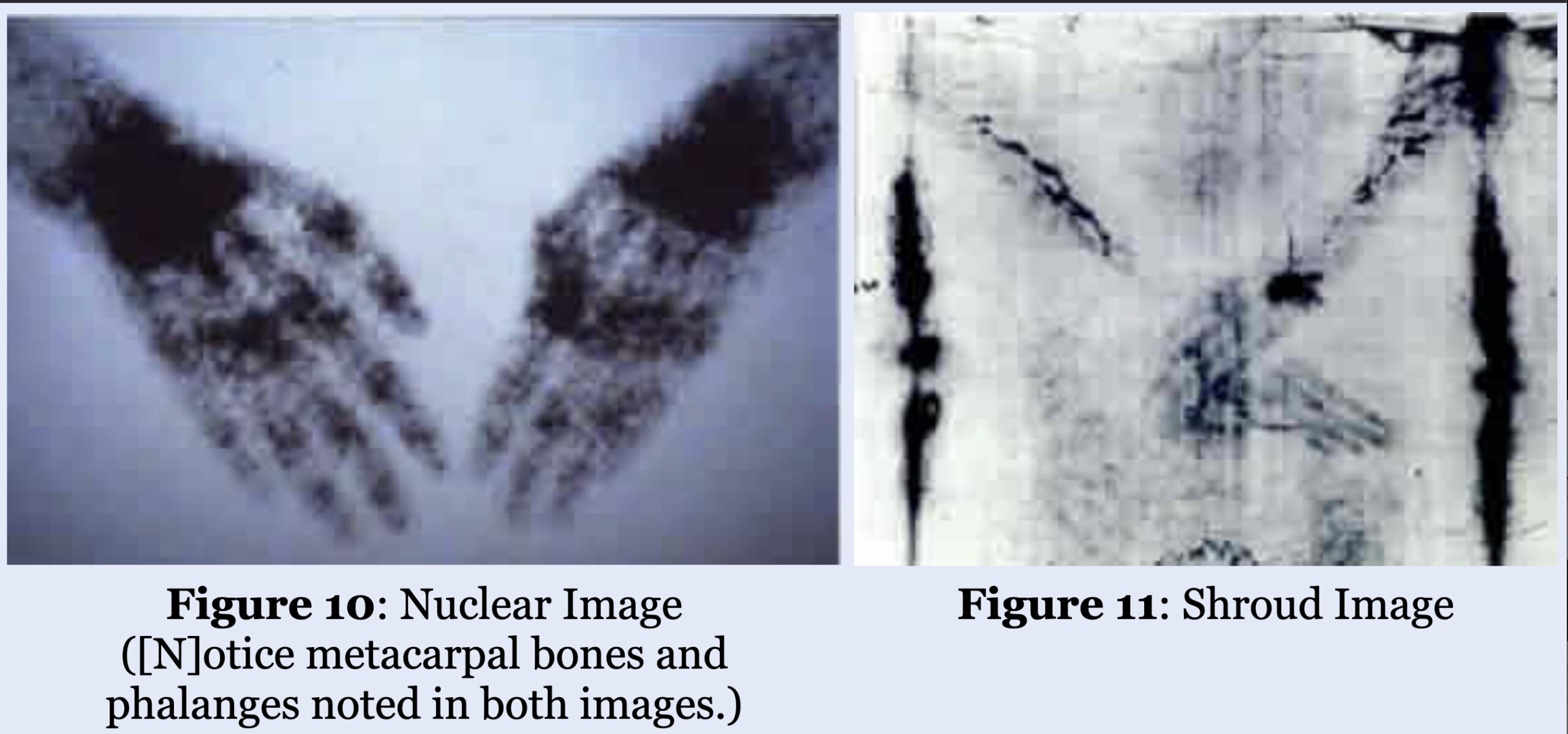 Various aspects of physiology are similarly apparent. “Sixth, the fact that soft tissues, skeletal information, as well as pathology in these tissues, can all be imaged concomitantly using the nuclear medicine model, demonstrates the parallel to the Shroud where the same is observed.”